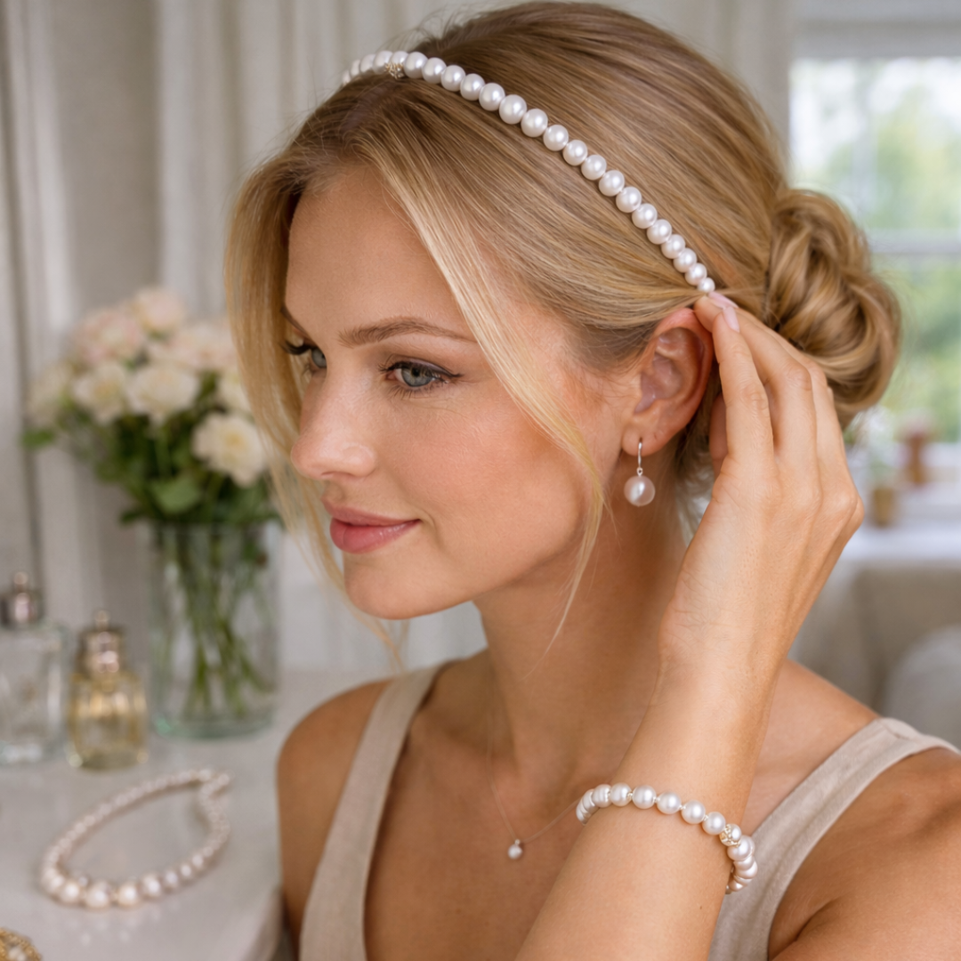 En helt nydelig hårbøyle i ekte ferskvannsperler av høy kvalitet. Finnes i 3 farger, hvit, fersken og rosa. Kr 597.